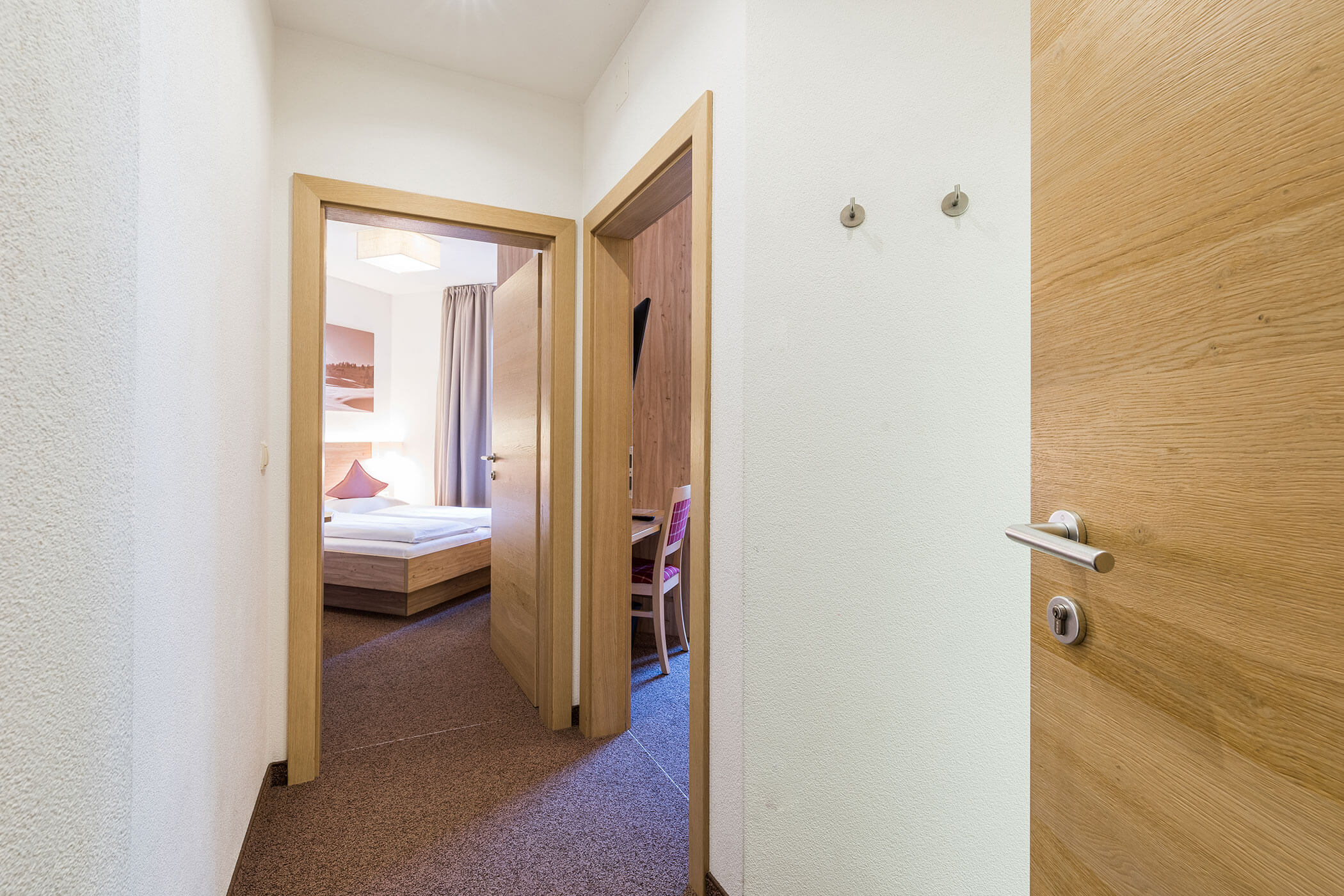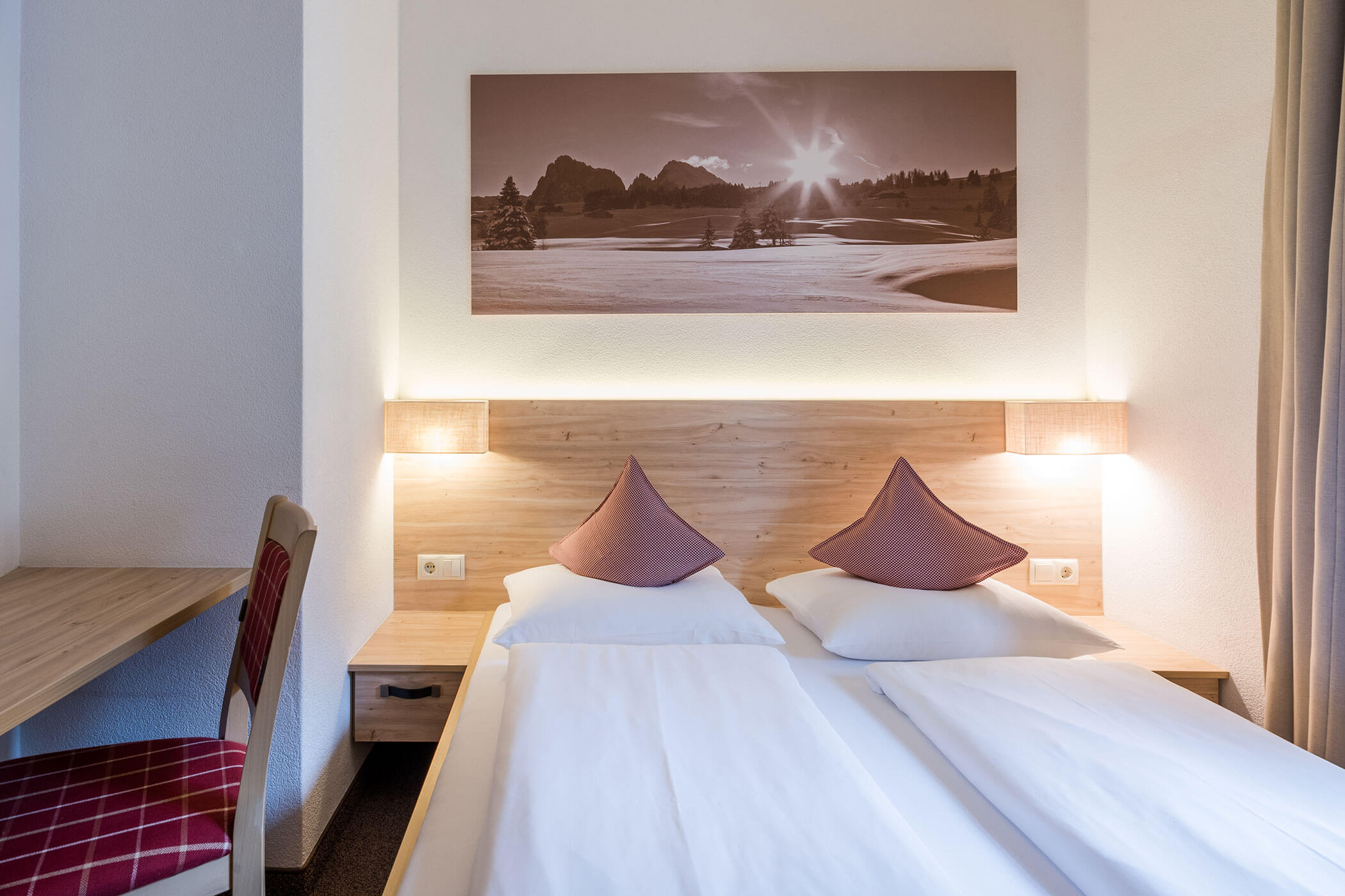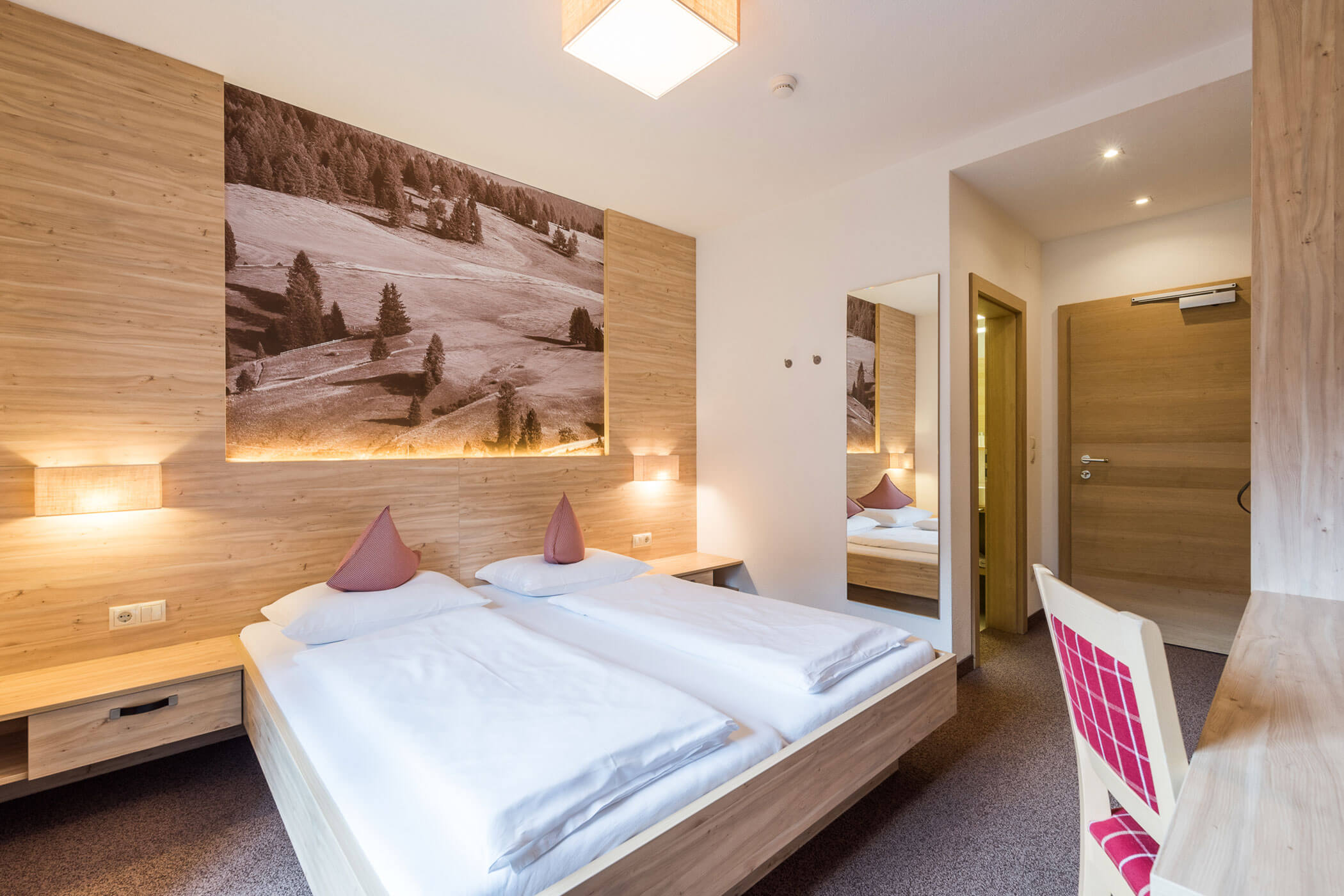 Beschreibung: Die Familienzimmer im Anewandter Hostoric Hotel bei Bruneck bieten auf ca. 38 m² geräumigen Komfort für bis zu 4 Personen und bestehen aus zwei nebeneinander liegenden aber separaten Schlafzimmern (mit je einem Doppelbett), welche mit einer Verbindungstür verbunden sind. Jedes Schlafzimmer verfügt über Flat-TV mit SAT-Empfang, Safe, Mini-Bar, kostenloses W-LAN, Telefon, größtenteils Balkon. Das gemeinsame Badezimmer bietet Dusche und WC, Föhn sowie Bademäntel.
